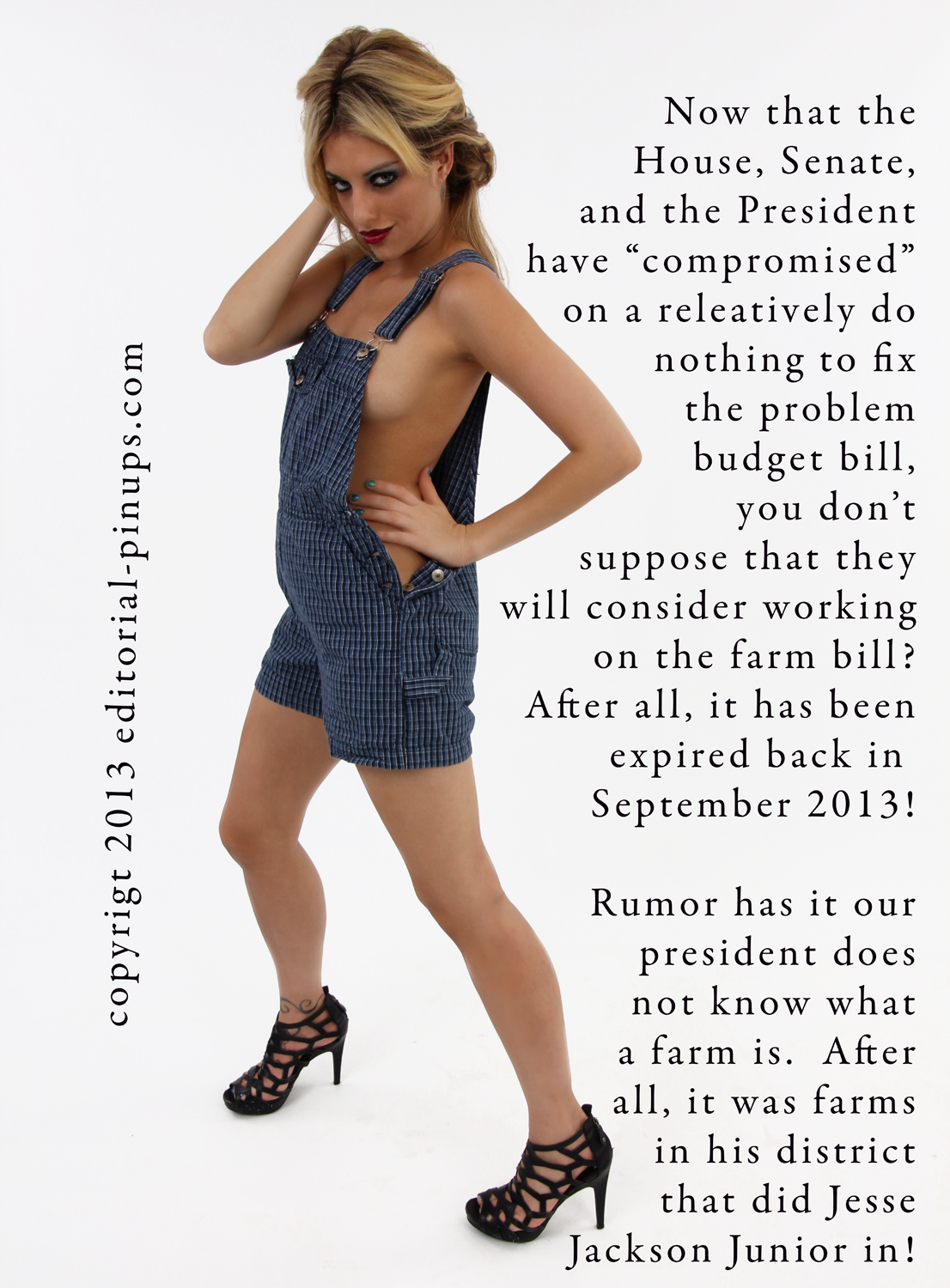 Ok, now that the bogus budget bill has been passed by the house, it is time to remind these bozos that the farm bill expired in September 2013. Now not that our president truly understands what a farm is, but one of his advisors should mention to him that there are things in farm bills that allow for a few people to plan for the future.
